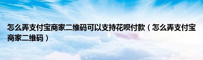 大家好,小晋来为大家解答以下问题,关于怎么弄支付宝商家二维码可以支持花呗付款,怎么弄支付宝商家二维码很多人还不知道,今天让我们一起来看看吧!