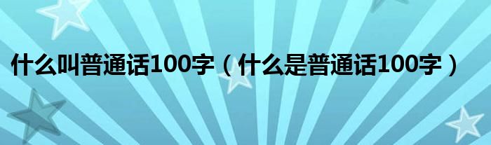 关于什么叫普通话100字,什么是普通话100字这个很多人还不知道,今天菲菲来为大家解答以上的问题,现在让我们一起来看看吧!