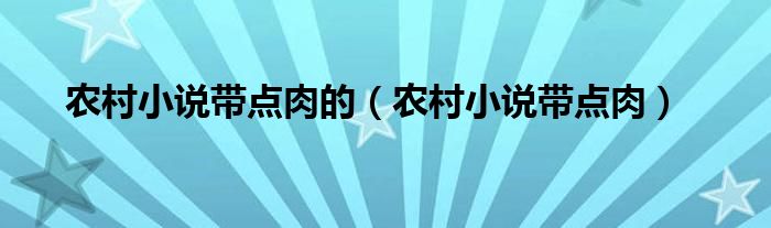 农村小说带点肉的(农村小说带点肉)