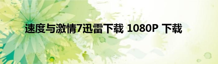 速度与激情7迅雷下载 1080P 下载