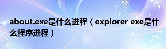 关于about.exe是什么进程,explorer exe是什么程序进程这个很多人还不知道,今天菲菲来为大家解答以上的问题,现在让我们一起来看看吧!