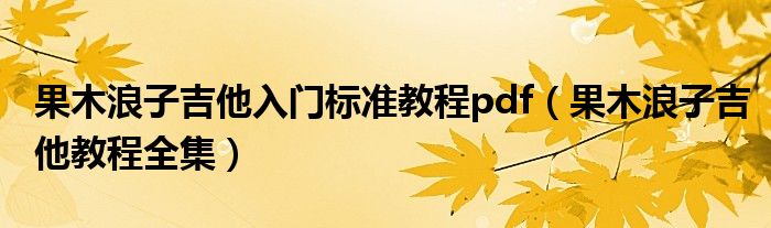 关于果木浪子吉他入门标准教程pdf,果木浪子吉他教程全集这个很多人还不知道,今天菲菲来为大家解答以上的问题,现在让我们一起来看看吧!