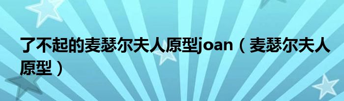 大家好,小晋来为大家解答以下问题,关于了不起的麦瑟尔夫人原型joan,麦瑟尔夫人原型很多人还不知道,今天让我们一起来看看吧!