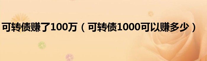 可转债赚了100万(可转债1000可以赚多少)