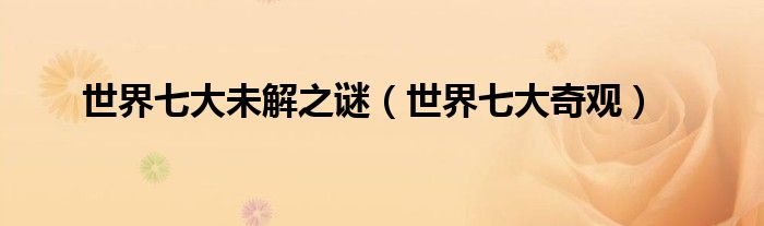 关于世界七大未解之谜,世界七大奇观这个很多人还不知道,今天菲菲来为大家解答以上的问题,现在让我们一起来看看吧!