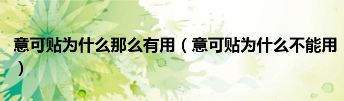 关于意可贴为什么那么有用,意可贴为什么不能用这个很多人还不知道,今天菲菲来为大家解答以上的问题,现在让我们一起来看看吧!