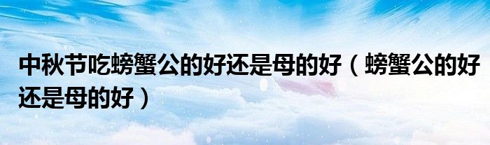 关于中秋节吃螃蟹公的好还是母的好,螃蟹公的好还是母的好这个很多人还不知道,今天菲菲来为大家解答以上的问题,现在让我们一起来看看吧!