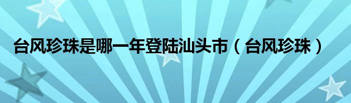 关于台风珍珠是哪一年登陆汕头市,台风珍珠这个很多人还不知道,今天菲菲来为大家解答以上的问题,现在让我们一起来看看吧!