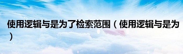 关于使用逻辑与是为了检索范围,使用逻辑与是为这个很多人还不知道,今天菲菲来为大家解答以上的问题,现在让我们一起来看看吧!