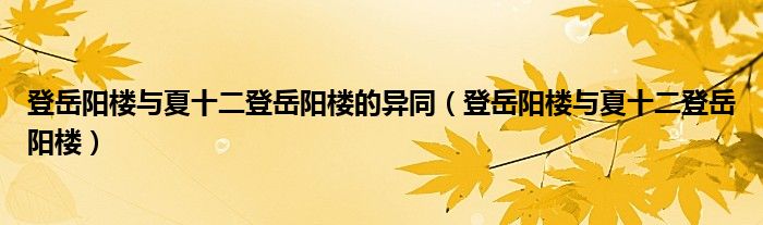 关于登岳阳楼与夏十二登岳阳楼的异同,登岳阳楼与夏十二登岳阳楼这个很多人还不知道,今天菲菲来为大家解答以上的问题,现在让我们一起来看看吧!