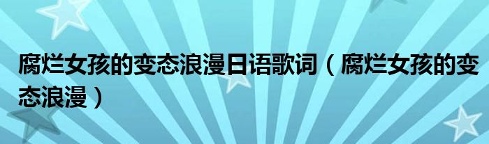 关于腐烂女孩的变态浪漫日语歌词,腐烂女孩的变态浪漫这个很多人还不知道,今天菲菲来为大家解答以上的问题,现在让我们一起来看看吧!