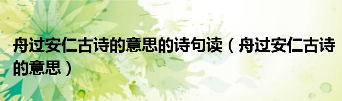 大家好,小晋来为大家解答以下问题,关于舟过安仁古诗的意思的诗句读,舟过安仁古诗的意思很多人还不知道,今天让我们一起来看看吧!