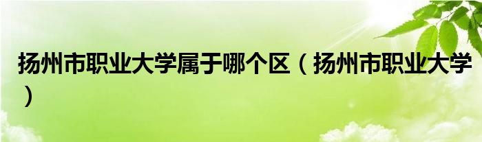 关于扬州市职业大学属于哪个区,扬州市职业大学这个很多人还不知道,今天菲菲来为大家解答以上的问题,现在让我们一起来看看吧!