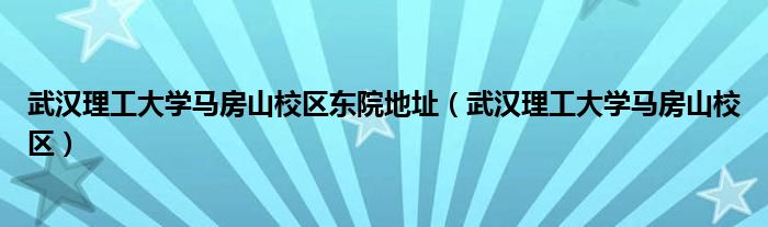 武汉理工大学马房山校区东院地址(武汉理工大学马房山校区)