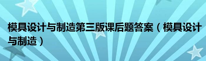 关于模具设计与制造第三版课后题答案,模具设计与制造这个很多人还不知道,今天菲菲来为大家解答以上的问题,现在让我们一起来看看吧!