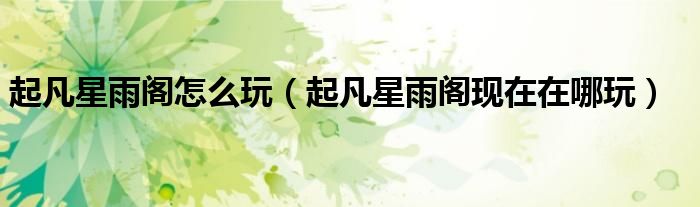 关于起凡星雨阁怎么玩,起凡星雨阁现在在哪玩这个很多人还不知道,今天菲菲来为大家解答以上的问题,现在让我们一起来看看吧!