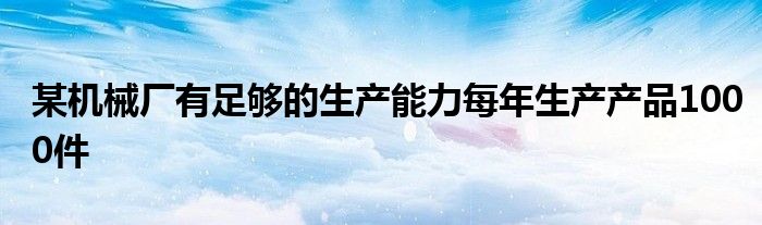 关于某机械厂有足够的生产能力每年生产产品1000件这个很多人还不知道,今天菲菲来为大家解答以上的问题,现在让我们一起来看看吧!