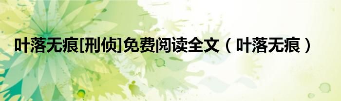 关于叶落无痕[刑侦]免费阅读全文,叶落无痕这个很多人还不知道,今天菲菲来为大家解答以上的问题,现在让我们一起来看看吧!