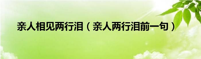 关于亲人相见两行泪,亲人两行泪前一句这个很多人还不知道,今天菲菲来为大家解答以上的问题,现在让我们一起来看看吧!