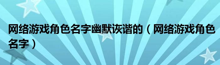 网络游戏角色名字幽默诙谐的(网络游戏角色名字)
