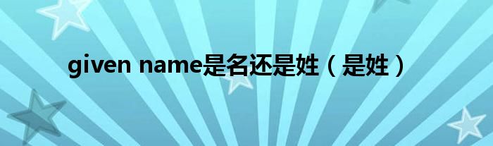 关于given name是名还是姓,是姓这个很多人还不知道,今天菲菲来为大家解答以上的问题,现在让我们一起来看看吧!