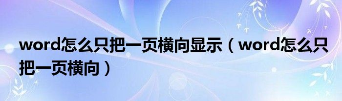 大家好,小晋来为大家解答以下问题,关于word怎么只把一页横向显示,word怎么只把一页横向很多人还不知道,今天让我们一起来看看吧!