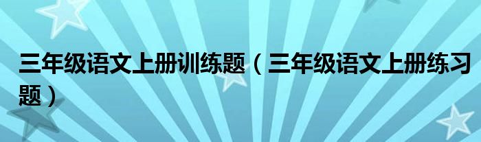 关于三年级语文上册训练题,三年级语文上册练习题这个很多人还不知道,今天菲菲来为大家解答以上的问题,现在让我们一起来看看吧!